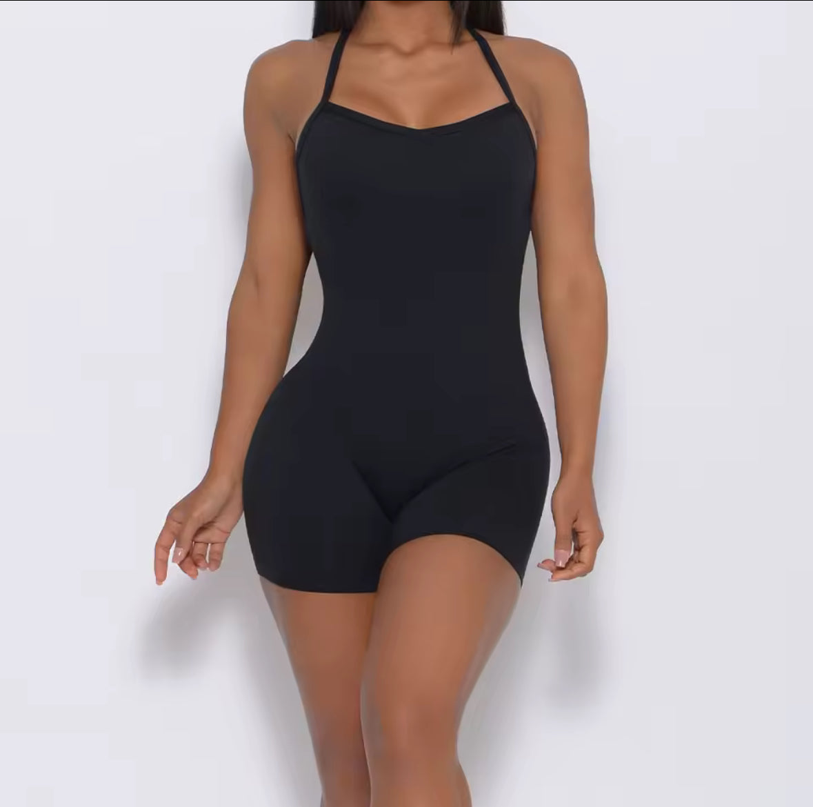 Elegante y cómodo. Este enterito corto sin mangas está pensado para quienes buscan libertad de movimiento, un estilo moderno y una prenda que se mantenga impecable con el uso.